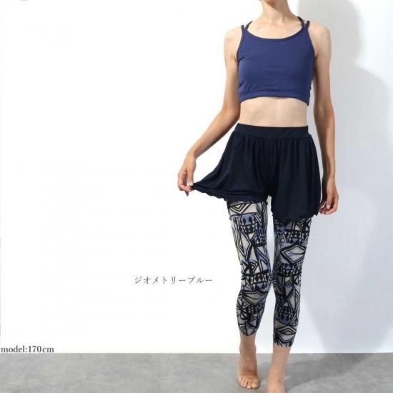 【ボトムスフェアSale対象40%OFF】ヨガウェア プリントレイヤードジニーパンツ レイヤード柄レギンスジニーパンツ レイヤードラップジニーパンツ スポーツ レギンス一体型