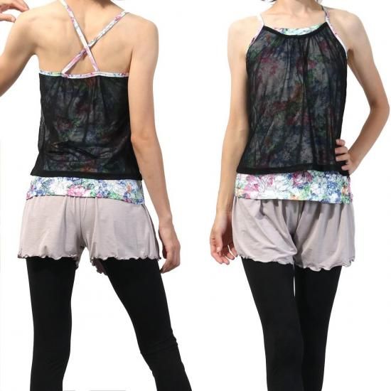 【ワンコインセール対象】ヨガウェア シアープリント カップ付きキャミソール 4タイプ フィットネスウェア レディース ヨガ ヨガトップス 20002003