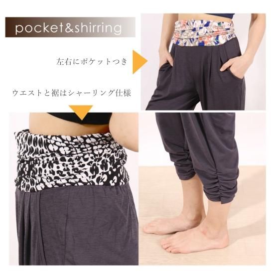【ボトムスフェアSale対象10%OFF】 ヨガウェア ヨガパンツ 美脚シャーリングサルエルパンツ ズンバウェア 20002811