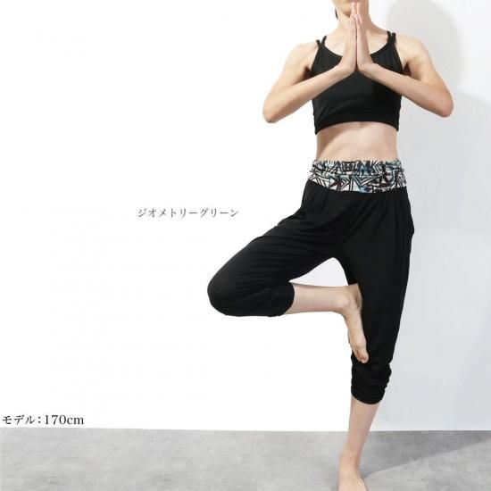 【ボトムスフェアSale対象10%OFF】 ヨガウェア ピラティス フィットネス ダンス ズンバ ヨガパンツ 7分丈 GYMサルエルパンツ