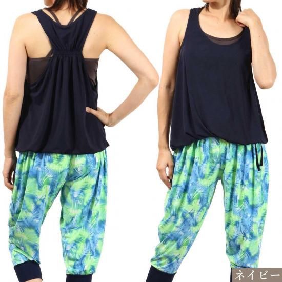 【ボトムスフェアSale対象40%OFF】ヨガウェア プリントレイヤードジニーパンツ レイヤード柄レギンスジニーパンツ レイヤードラップジニーパンツ スポーツ レギンス一体型