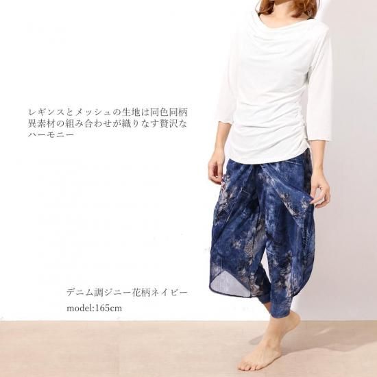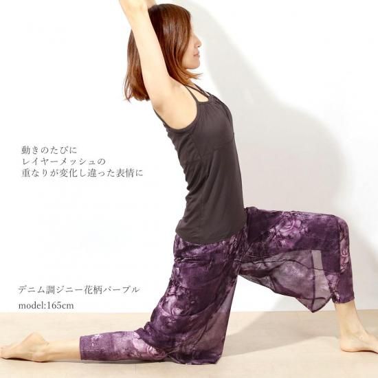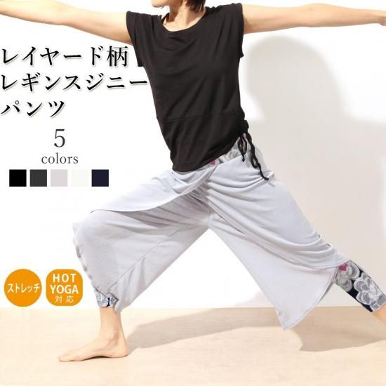 【ボトムスフェアSale対象40%OFF】ヨガウェア プリントレイヤードジニーパンツ レイヤード柄レギンスジニーパンツ レイヤードラップジニーパンツ スポーツ レギンス一体型 19002821