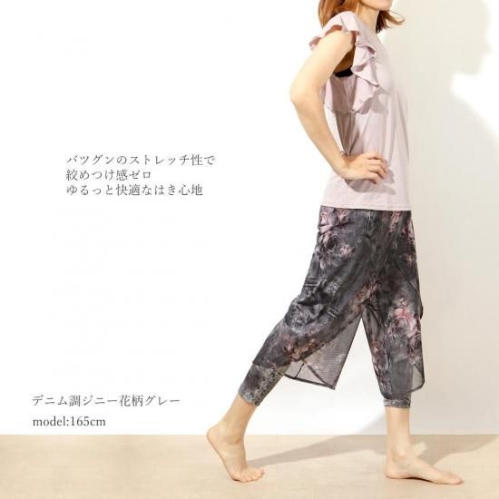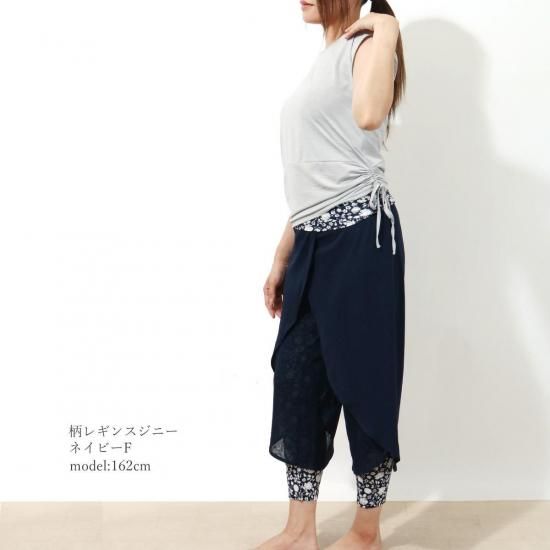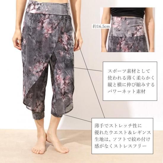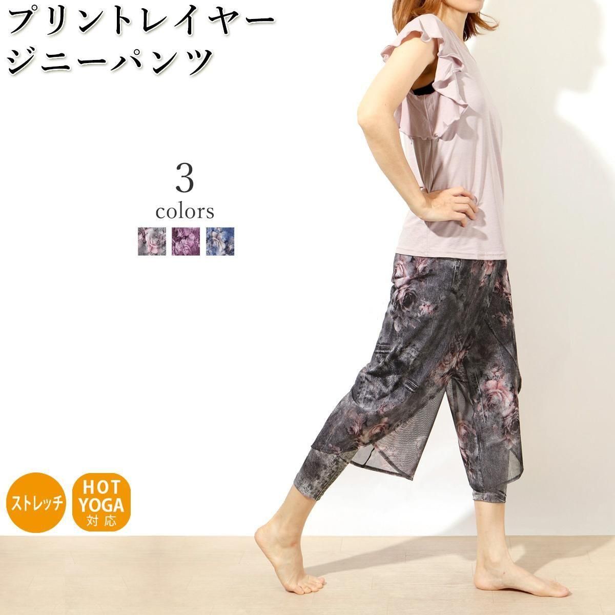 【ボトムスフェアSale対象40%OFF】ヨガウェア プリントレイヤードジニーパンツ レイヤード柄レギンスジニーパンツ レイヤードラップジニーパンツ スポーツ レギンス一体型